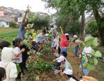 10/9(木)に1年生が上白根幼稚園の畑に行き、育てているサツマイモの観察をしました。つるが伸びて、「自分の身長をこえてる。」と驚いていました。その後、バッタなどの虫探しをしました。