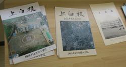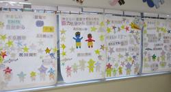 上白根小の歴史が分かる資料が職員室前のろう下に展示してあります。創立5周年から創立30周年までの記念誌や、当時の航空写真が展示してあります。また、9月に行われた50周年記念集会のときのプログラムや校内宝探しで完成した模造紙なども掲示してあります。ぜひご覧ください。