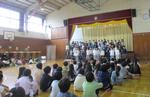 10/27(月)に4年生の音楽朝会がありました。4年生は、10月末に行われる旭区児童音楽会に参加するので、そのときに発表するリコーダー奏や歌の合唱を発表しました。また、特別音楽クラブ「ハーモニーフレンズ」と一緒に全校で今月の歌「あの青い空のように」を歌いました。