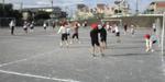 4年生は、体育で「ハンドボール」を学習しています。チームごとに、得点するために作戦を考え、パスをつなぎ、シュートまでの動きを確認していました。学習が進むにつれ、スペースをねらった動きや素早い動きが見られてきました。