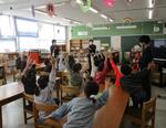 12/9(水)に旭図書館の方の出前授業がありました。市の図書館の使い方や旭図書館の施設などの紹介を映像やクイズなどを通して学びました。旭図書館には約12万冊の本があるそうで子どもたちは、とても驚いていました。