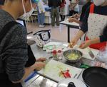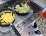 6年生が家庭科で、調理実習を行っています。事前に「主菜」「副菜」の調理計画を立て、実習に臨みました。班のメンバーと声を掛け合いながら、てきぱきと調理していました。この日は、ゆで野菜サラダや野菜炒め、卵焼きなどを作りました。最後は、おいしく試食しました。