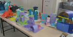 2年生が図工の学習「まどをあけたら」でカッターナイフを使って作品づくりをしたことは、11月にお知らせしていましたが、できあがった作品の中にレインボーライトを入れて明かりをつけて楽しみました。理科室に暗幕をして暗くした状態でレインボーライトをつけました。自分の作品がライトアップされ、みんな喜んでいました。(写真はできあがった作品です。)