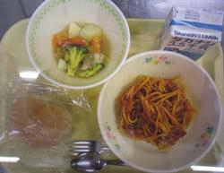 12/23(火)に2025年最後の給食がありました。メニューは、ソフトフランスパン、牛乳、スパゲティミートソース、野菜のスープ煮でした。給食後、食缶や食器を給食室へ返却するときには各学級、大きな声で「ごちそうさまでした。」と言っていました。2026年も健康に過ごしていきましょう。