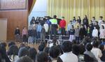2/16(月)に音楽朝会がありました。今回は、特別音楽クラブ(ハーモニーフレンズ)の発表でした。今まで活動して歌ってきた4曲を発表しました。その中には、三部合唱の曲もありました。また、今月の歌「スマイルアゲイン」を全校で歌いました。朝からすがすがしい気持ちになりました。