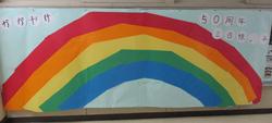 もうすぐ卒業を迎える6年生に対してのいろいろな活動の計画が始まっています。職員室前のろう下には、大きな虹の掲示物が掲示してあります。今まで上白根小学校をリードしてきた6年生に対して思いを込めて4、5年生が計画を立てて活動しています。