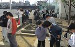 職員室前のビオトープ再生に向けて、4年生が活動しています。ビオトープアドバイザーからのアドバイスをもとに、実際に職員室前のビオトープを見て、「こんな植物を育てたらどうかな。」など話し合っていました。