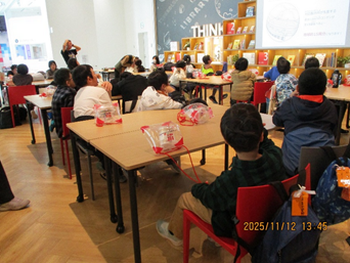 1日目は、みなとみらいを見学しました。総合的な学習の時間に、みなとみらいにはどんな建物があるのか、どんなお土産があるのかなど、一人ひとりが興味をもったことを事前に調べ、みんなでガイドブックを作りました。自分が調べた建物を実際に見ながら、グループでウォークラリーをしたり、カップヌードルを作ったりしました。
