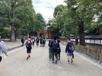 見たいものを自分で選び、それぞれ鎌倉大仏や鶴岡八幡宮などを見学しました。実際に見ることで感じられる大仏の大きさに感動したり、頼朝のお墓を実際に見たり、どのコースを選択した子どもたちも興味津々で見学していました。初めての、校外でのグループ活動でしたが、班の友達と協力して、仲良く回ることができました。