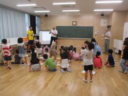 3・4年生のアクティビティは、「今日は月曜日」でした。英語の絵本を見ながら動物や食べ物、曜日の英語を覚え、覚えた単語を使って動きながら歌いました。