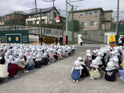 今回は予告なしの避難訓練、先週までに各クラスで事前指導が行われました。地震を想定しての訓練は中休みが終わった直後でした。子どもたちは、臨機応変に動き、静かに校庭に移動することができました。
