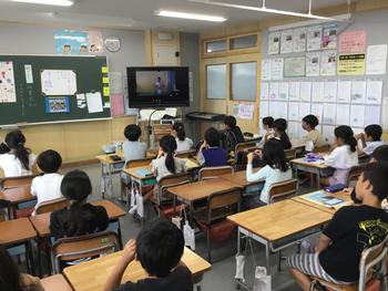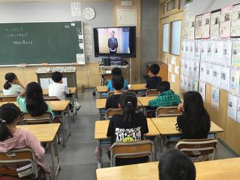 今回はテレビ放送での始業式でした。校長先生のお話の後、3年生代表の児童が前期の振り返りと後期のめあてを堂々と発表しました。