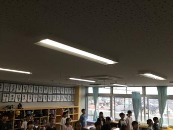 子どもたちは集中して話を聞いていました。最後に校歌を歌って始業式が終わりました。