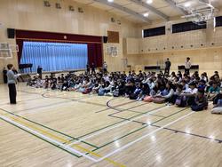 準備が終わり、ピロティに集合しました。最後に新しい校長先生から、よろしくの挨拶と6年生の準備への感謝の言葉をいただいて終わりました。