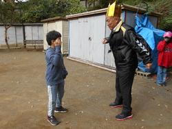 新井小の子どもたちと合流し、一緒にレクやダンスをして楽しみ、たくさんの笑顔が見られました。レクの「ピラミッドじゃんけん」では、じゃんけんで負けたらスタートに戻るというルールで、ピラミッドの頂点にいる校長先生を目指して勝負をしました。校長先生や新井小学校のお友達とじゃんけんを楽しみ、負けても、何度も挑戦する姿が見られました。ダンスは、流行りの「ナルトダンス」をみんなで踊りました。少し恥ずかしがりながらも、楽しく踊る様子が見られました。