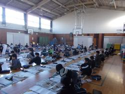書初めでスタートです。1,2年生は硬筆、3年生以上は毛筆です。体育館で心を込めて書きました!