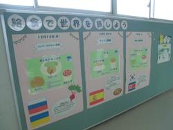 給食室の前には、献立についてわかりやすく伝える掲示物も貼られました。さあみんな!給食で世界を旅しよう!