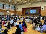 人権集会では、SDGs委員会の活動紹介や、いいかも班での「ふわふわばくだんゲーム」を通して、友達の意見を認め合う体験をしました。また、児童は「いじめ防止のために自分ができること」を折り紙で折ったピンクシャツに書き、模造紙に貼り出しました。