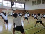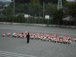 朝の時間、運動会に向けて縦わり班でソーラン節を練習しました。
