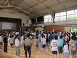 普段何気なく歌っている校歌を再確認した後、全校で元気よく歌いました。