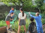 収穫を前に、スズメなどにお米が食べられないよう稲作実行委員が協力してネットを設置しました。