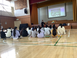 桐蔭横浜大学の学生さんに、競技用車いすのことや車いすバスケの簡単な動きについて教えていただきました。積極的に発言したり質問したりして、真剣に取り組んでいました。