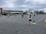 空気が冷たい中でも、元気に体育でティーベースボールをしています。