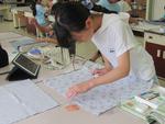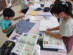 子どもたちは、布をたったり、しつけをつけたりと製作の準備を進めています。