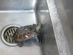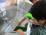 環境委員会の子どもたちが、学校で世話をしているメカくん(ミドリガメ)の水槽を掃除していました。