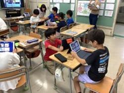 国語でのローマ字の学習を経て、いよいよタイピングにチャレンジ!ローマ字は「a.i.u.e.o」が基本になっているというルールに子どもたちが気付き、意欲的にタイピングに取り組み始めました。ローマ字の学習を活かして、話し合った内容を共有ノートに打ち込んだりと、学習にもタイピングを積極的に活用し始めています。たくさん練習してタイピングの上達を目指していきます。