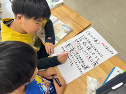 夏休みが明けた最初の学級活動では、クラス全員で「夏休みすごろく」を行いました。書かれたお題に答えながら進んでいくと、夏休みの思い出を話したり、一緒にスクワットで体を動かしたりと楽しんでいる姿が見えました。笑顔いっぱいの時間を過ごすことで、夏休み明けの緊張も和らぎ、さらにクラスの絆を深めることができました。