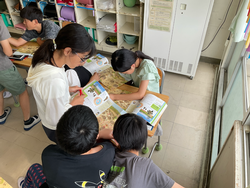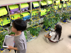 生活科「おいしいやさいをそだてたい」では、収穫パーティを目標に、子どもたちからでた、「もっとたくさん もっと大きく もっとおいしく」というを思いを大切に学習しています。自分で、調べ方や学ぶ仲間を選び、主体的に学びを深めています。授業の後には、「早く支柱を立てたい!」「水のあげすぎはよくない」など、それぞれ思いをもって次の活動に意欲を持っていました。
