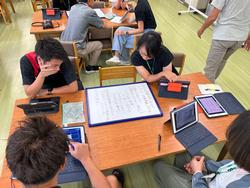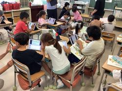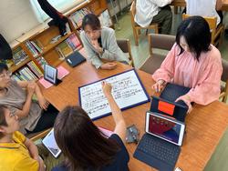 リーディングDX指定校になり、3ヶ月が経ちました。夏休み前までの各学年の取り組みを踏まえて、出てきた成果や課題を共有し、次のステップへ向けて取り組んでいくことについて話し合いました。また、汎用的なソフトウェアを活用した模擬授業を通して、子どもの目線に立って考えることで、文字から考えを読み取る難しさや、話し合いによる共有の大切さを実感しました。子どもたちが受け身にならず、主体的に学びを調整していくことができるよう、授業づくりに励んでいきます。