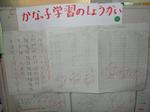 今日は、子どもたちが普段頑張っている「かなっ子学習」を紹介します。学習内容の定着を図るための宿題も出していますが、学年が上がるにつれて自分たちで課題を見つけて考えていく力を身に付けさせたいと思っています。学校教育目標の【か】よく考え、の達成に向けた取組です。教室を回ると、子どもたちの頑張ったノートが貼りだされていました。