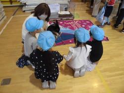 11月11日火曜日、集会で「円陣手つなぎ風船ラリー」を行いました。