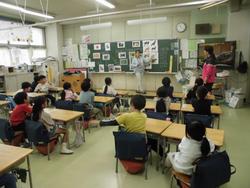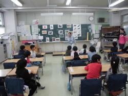 今年度はスリランカの先生が来られています。1年生の教室では、動物の鳴き声を日本とスリランカで比べていました。