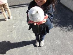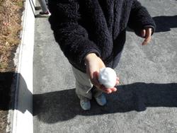 昨日の雪はほとんど残っていなかったのですが、少しの雪を見つけて雪玉にしたり、雪だるまにしたりしていました。