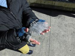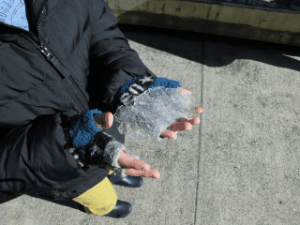 2月9日月曜日、1年生が残っている雪を見つけていました。