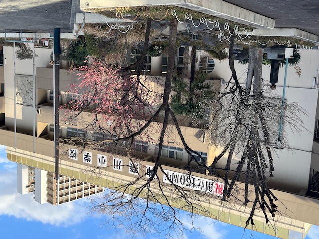 紅白の梅の花が満開です。150周年の本校をお祝いしてくれているかのようです。