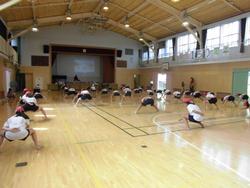 9月22日月曜日、6年生がスポーツフェスティバルに向けて「ソーラン節」の練習をしていました。