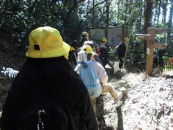 広場でレンジャーから自然観察の方法と注意を聞いた後、森の散策に出かけました。地元にはない山道を1時間近くかけて歩き、自然と触れ合いました。