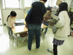 教室の活動は1年と6年のペア活動です。どちらも共通しているのは、下の学年が上の学年を招いて交流しているところです。
