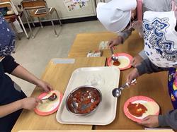 個別支援級で育てたトマトが実ったので、収穫してトマトソースを作りました。今日はそのソースを使って、ピザを焼くことに挑戦しました。
