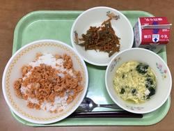 ツナそぼろはツナと人参の組み合わせが良かったです!揚げ大豆はちょうどいい塩加減でもっと食べたくなりました(給食委員会S.Y) |