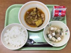 ★10月2日(木) ごはん 牛乳 肉そぼろ 甘酢あえ 月見汁