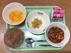 ★10月29日(水) はいがパン 牛乳 チリコンカーン 野菜ソテー ミックスフルーツ