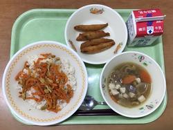 ★12月16日(火) はいがごはん 牛乳 にんじんごはんの具 きびなごフライ けんちん汁