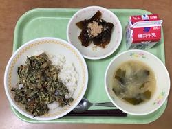 つなそぼろは、味が染み込んでいて美味しかったです!味噌汁は体の中から温まりました。五目豆は、いろんな具材が入っていて美味しかったです。(給食委員会K.S) |