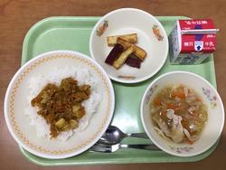 ★12月15日(月) はいがごはん さつまいものキーマカレー ごま酢あえ プルーンはっこう乳