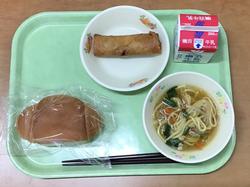 はるまきは、外はパリッとしていて、中は具沢山でパンと食べると意外と合いました。ヌードルスープは、麺がつるつるで食べやすかったし、体の中から暖かくなりました。(給食委員会K.S &A.Y &S.Y) |